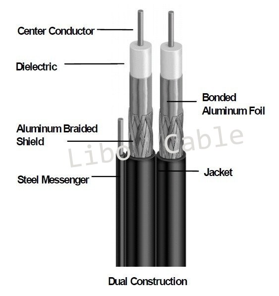 14 awg solid core bare copper dual shielded rg11 catv dbs coaxial cable sunlight resistant and suitable for direct burial.